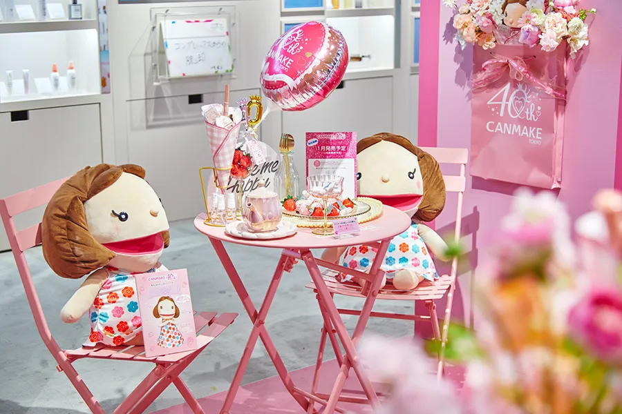 キャンメイクの人気アイテムが並ぶPop-upでは、『スーパーかわいい!パレット』のほか、殿堂入り*のロングセラーアイテム『クリームチーク』のリニューアル品も先行発売!